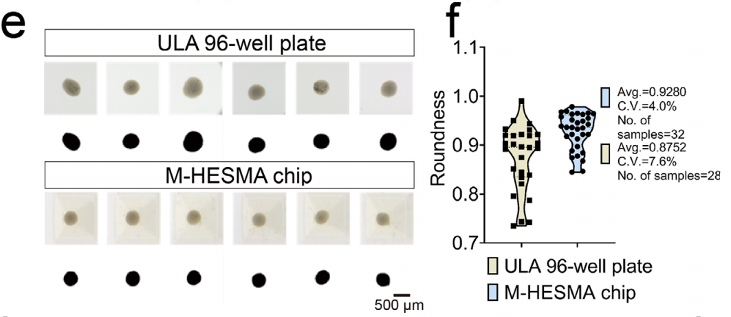 在M-HESMA芯片培養(yǎng)的細(xì)胞球更均一