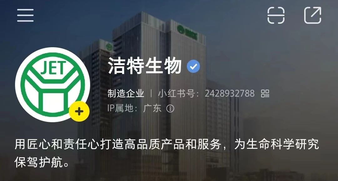 1. 關(guān)注微信公眾號“潔特生物JET”、小紅書官方號“潔特生物”